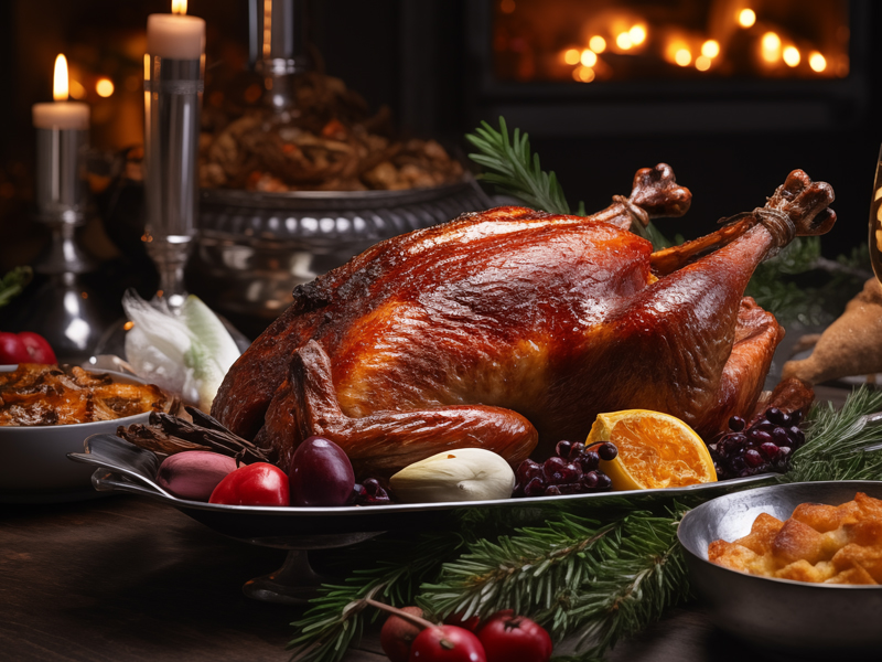 - Geschmorte Gänsekeule mit Rotkraut und Klößen