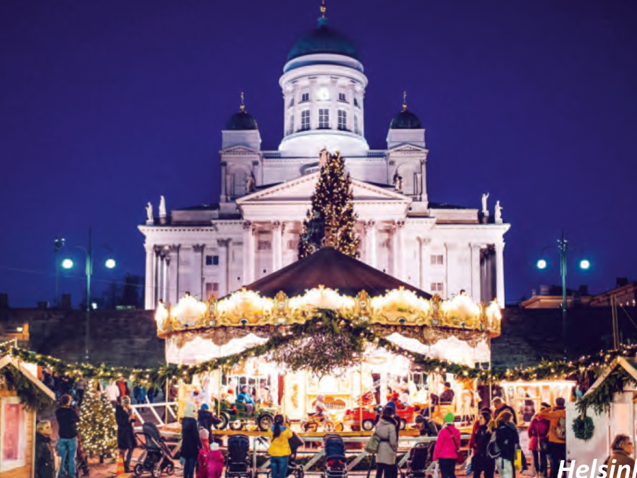 Gegen 9 Uhr erreichen Sie Helsinki und starten gleich, warm angezogen, zu einer Stadtührung, bei der Sie viele interessante Informatonen über die finnische Hauptstadt erhalten. Nicht selten fällt hier vor Weihnachten der erste Schnee. Bei einer Stadtrundfahrt sehen Sie den Marktplatz am Hafen mit der alten Markthalle, die Uspenski-Kathedrale, den Senatsplatz mit dem alles überragenden weißen Dom und können im Anschluss über den größten Weihnachtsmarkt Finnlands mit seinen über 150 roten Holzbuden bummeln. Helsinki erstrahlt pünktlich zur Adventszeit im Lichterglanz. Hier können Sie den magischen Zauber des Weihnachtsfestes spüren. Abends erwartet Sie ein finnisches Traditonsrestaurant zu einem guten Essen, bevor es in Ihr 4-Sterne Hotel geht.